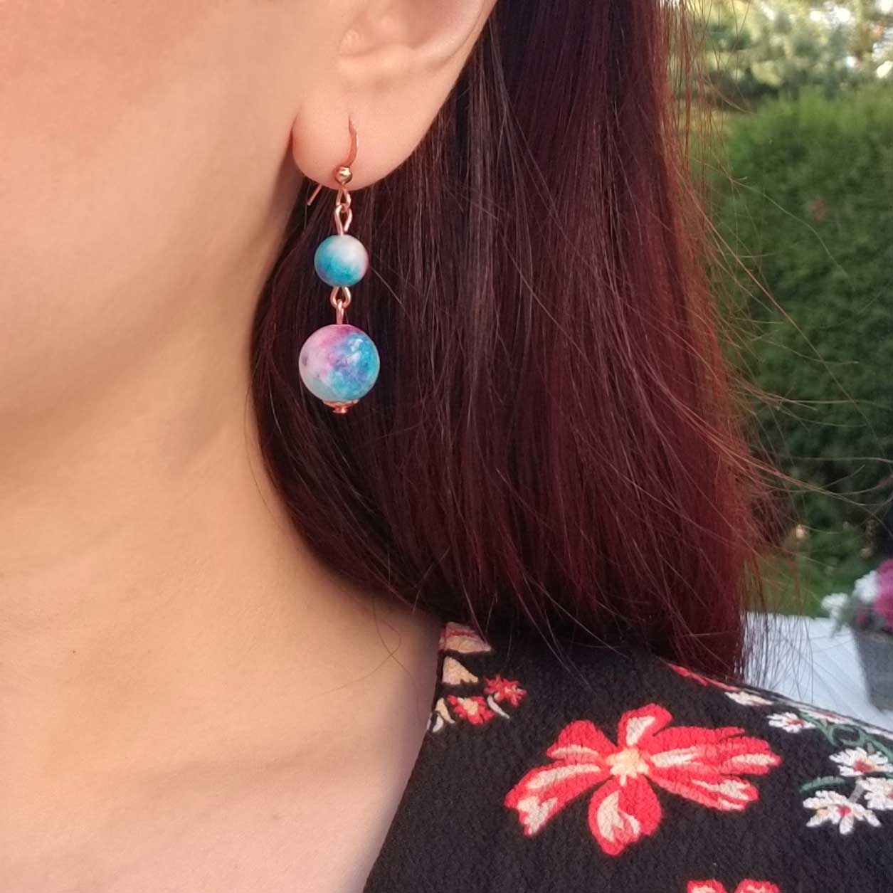 Vintage stil damer fargerike naturlige persiske jadeøredobber med rosa gullfargekrok og kontakter. Håndlaget i Norge.